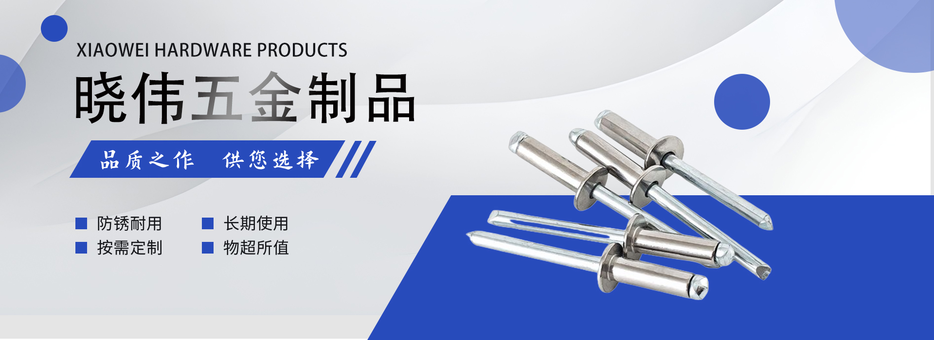 臨沂曉偉五金制品有限公司是一家擁有多年鉚釘制作經營的拉鉚釘廠家,主要經營產品有:拉鉚釘、抽芯鉚釘、異型鉚釘、拉花鉚釘。公司擁有先進的鉚釘生產設備及檢驗測試儀器,雄厚的技術力量保證產品的不斷更新,產品廣銷各地,被廣泛用于家具、家電、建筑裝潢、汽車制造、船舶制造、健身器材、通訊設備、電氣設備、集裝箱等領域。我廠所生產的產品質優價廉,發貨塊,服務周到,深得新老客戶的一致好評?!耙匀藶楸荆_拓創新”是公司的發展動力。